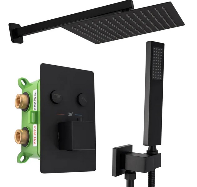 Душевая система скрытого монтажа Rea Davis с термостатом черный REA-P6357