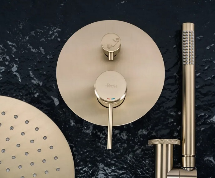 Душевая система скрытого монтажа Rea Lungo Grip со смесителем матовое золото REA-P8950