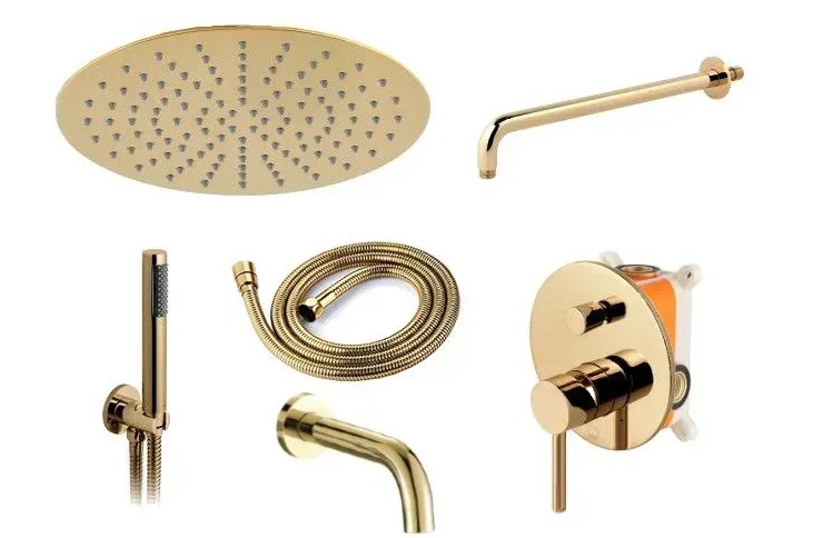 Душевая система скрытого монтажа Rea Lungo со смесителем золото REA-P4125