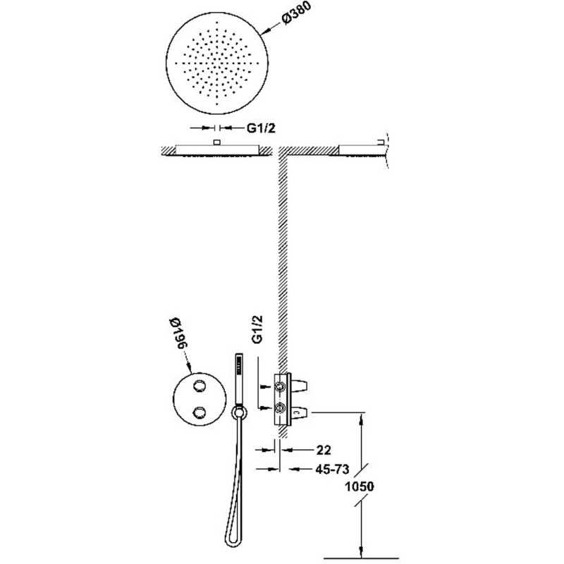 - встраиваемый верхний душ Ø 380 мм из нержавеющей стали