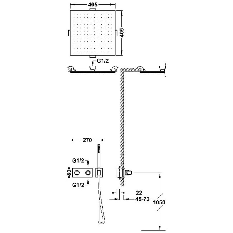 - Встраиваемый верхний душ 405х405 мм из нержавеющей стали