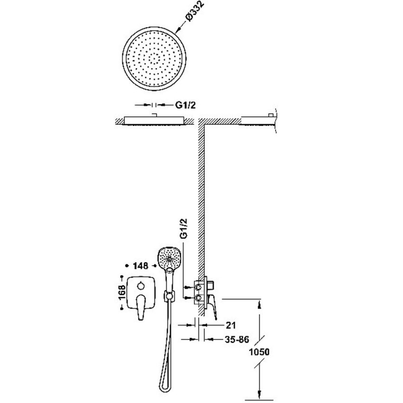 2) Верхний душ встраиваемый