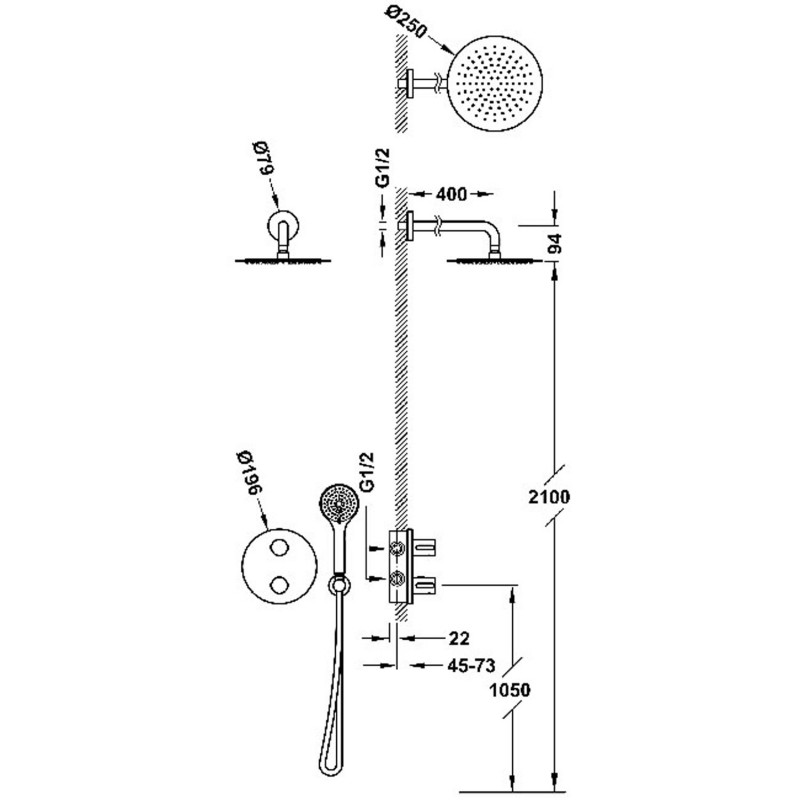 - Настенный кронштейн с регулируемым верхним душем из нержавеющей стали Ø 250 мм