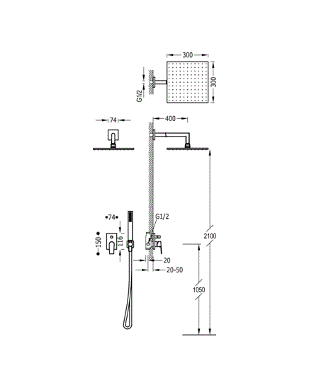 - Верхний душ 300 х 300 мм