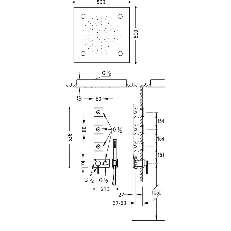 Душевая система скрытого монтажа Tres 3V с тремя боковыми форсунками хром 21027308