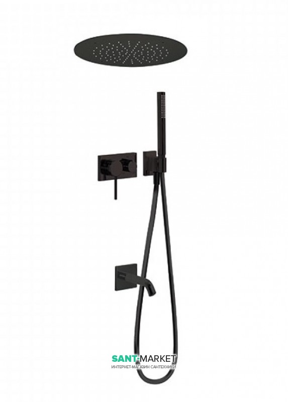 Душевая система скрытого монтажа Tres 3V с изливом для ванны черный матовый