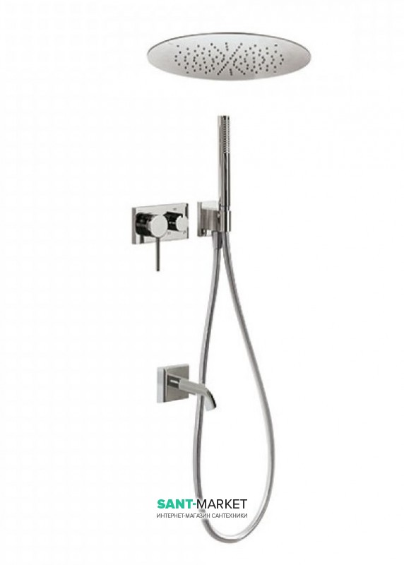 Душевая система скрытого монтажа Tres 3V с изливом для ванны сталь