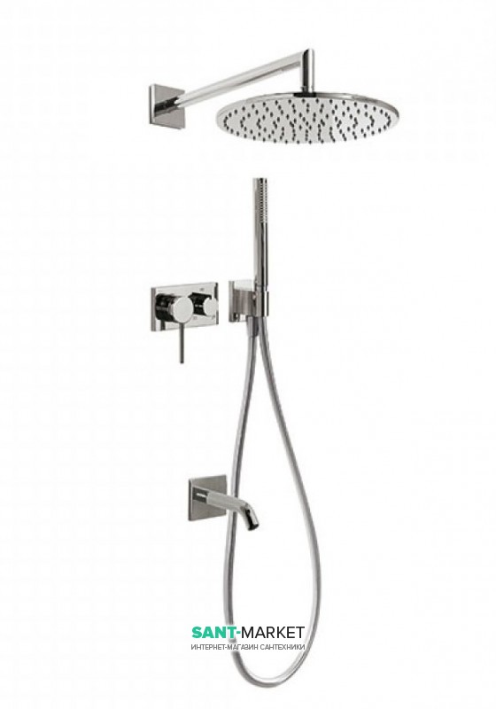Душевая система скрытого монтажа Tres 3V с изливом для ванны сталь