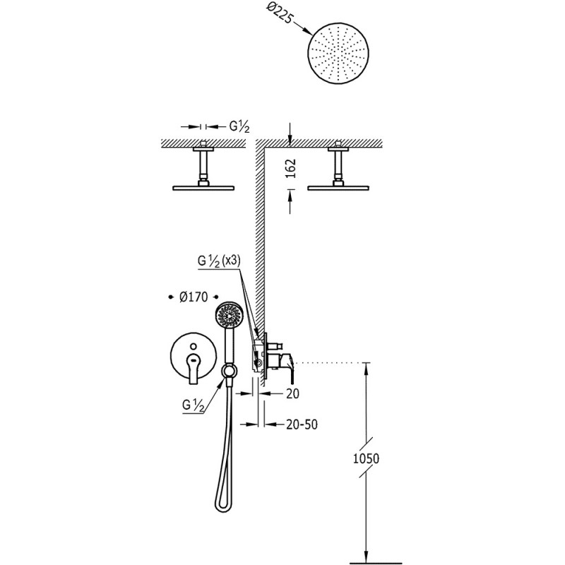 Душевая система скрытого монтажа Tres K-tres с однорычажным смесителем хром 06918080
