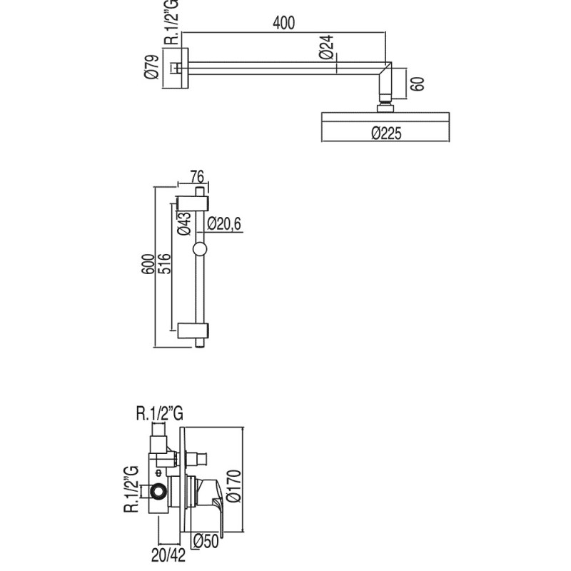 Душевая система скрытого монтажа Tres K-tres с однорычажным смесителем и штангой хром 169980