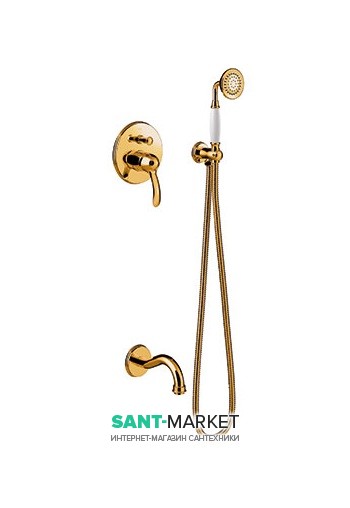Душевая система скрытого монтажа Tres Tres-Сlasic с однорычажным смесителем и изливом для ванны золото 24218005OR