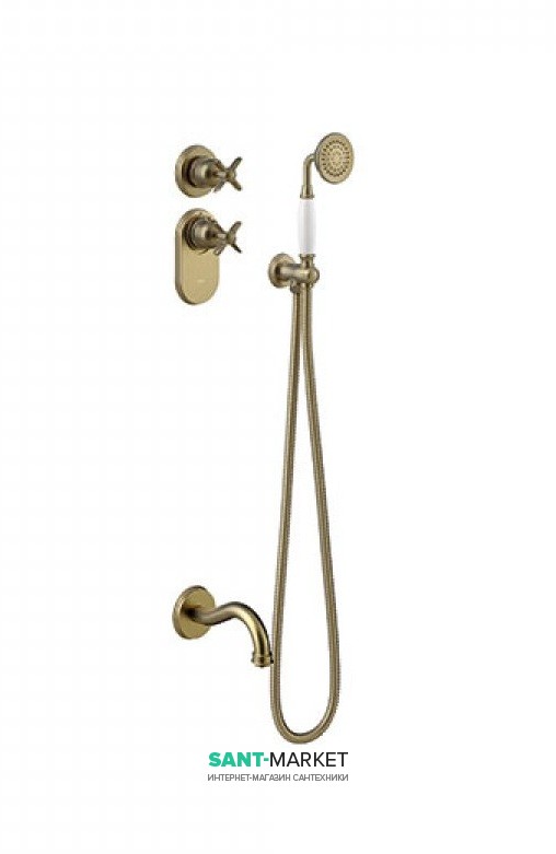 Душевая система скрытого монтажа Tres Tres-Сlasic с термостатом ручным душем и изливом для ванны состаренная латунь