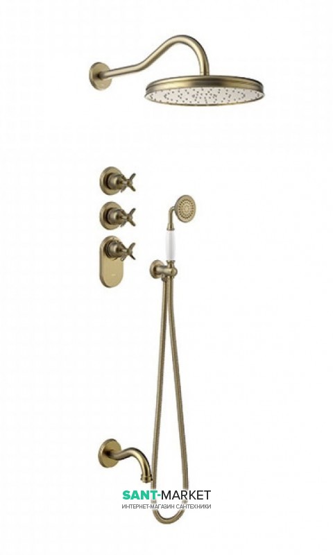 Душевая система скрытого монтажа Tres Tres-Сlasic с термостатом верхним и ручным душем состаренная латунь