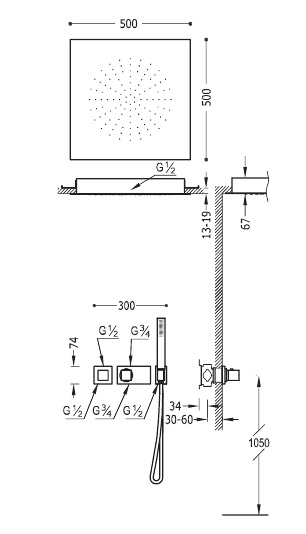 - Встроенная термостатическая система для душа