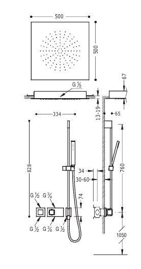 Душевая система Tres Block System термостатическая с верхним и ручным душем хром