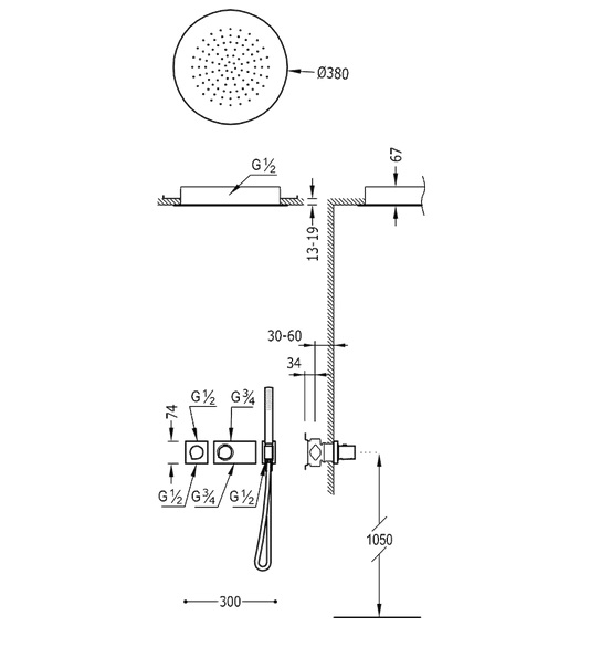 Душевая система Tres Block System термостатическая с верхним и ручным душем хром 20735204