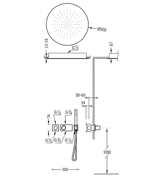 - Встроенная термостатическая система для душа