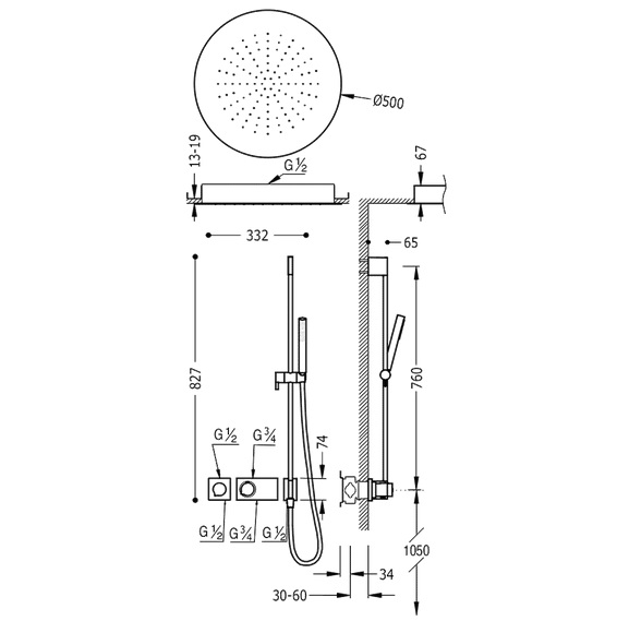 Душевая система Tres Block System термостатическая с верхним и ручным душем хром 20735212