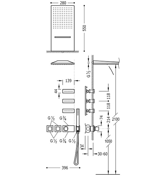 - Встроенная термостатическая система для душа
