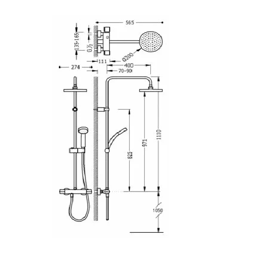 - Высота стойки для душа: 1128 мм
