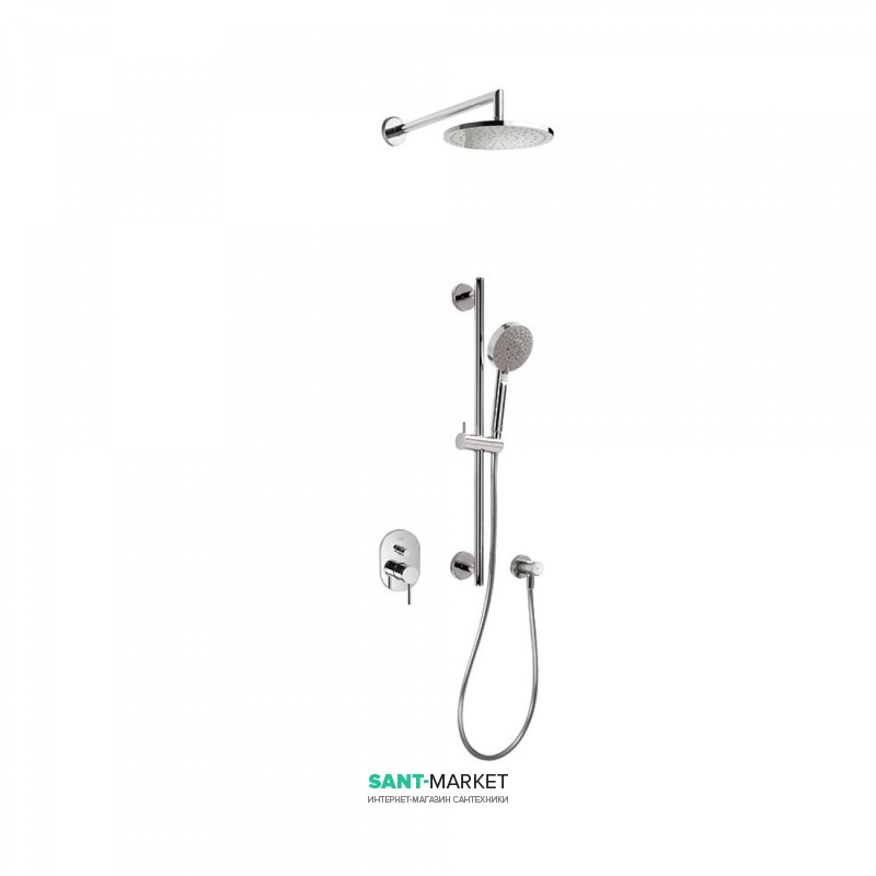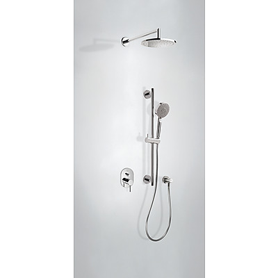 - Душевая система с однорычажным встроенным смесителем с затвором и регулятором потока