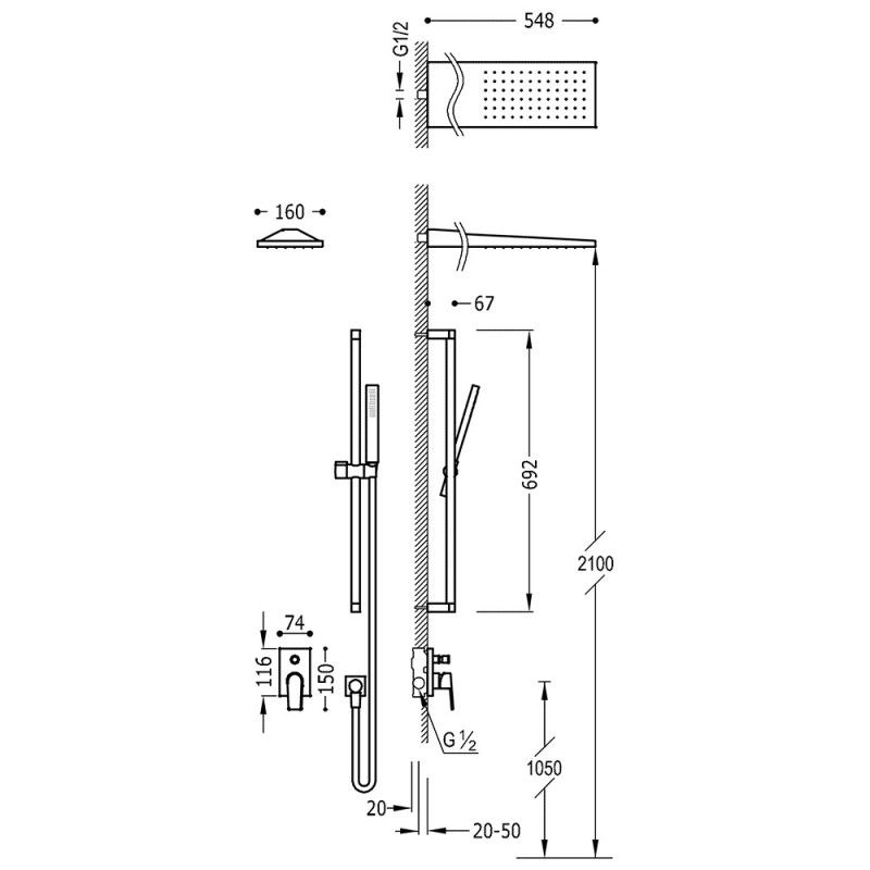 Душевая система Tres Project-Tres с однорычажным встроенным смесителем и штангой хром 21198093