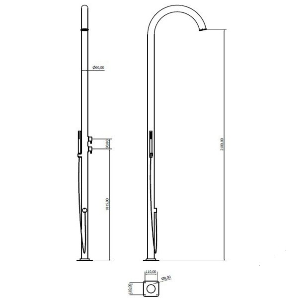 Душевая стойка AMA Cometa Out уличная с ручным душем нержавеющая сталь полированный