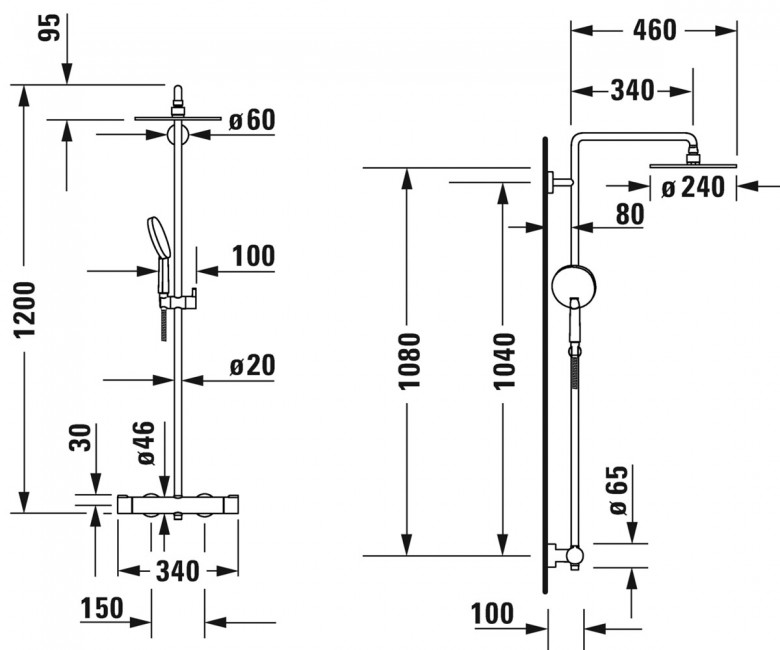 Душевая стойка для душа Duravit C.1 с термостатом хром C14280008010