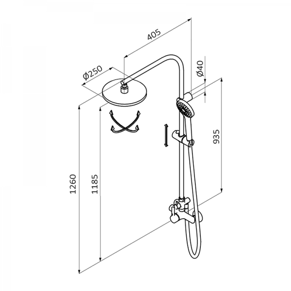 - Форма лейки верхнего душа: круглая (Ø 250 мм, 1 режим)