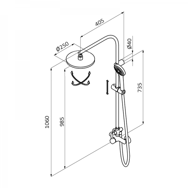 - Форма лейки верхнего душа: круглая (Ø 250 мм, 1 режим)