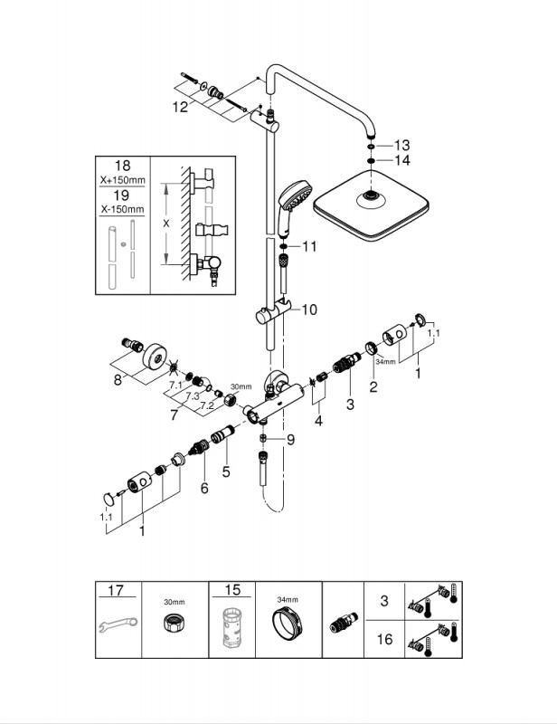 - GROHE SafeStop Plus опциональный ограничитель температуры на 43 ° C в комплекте