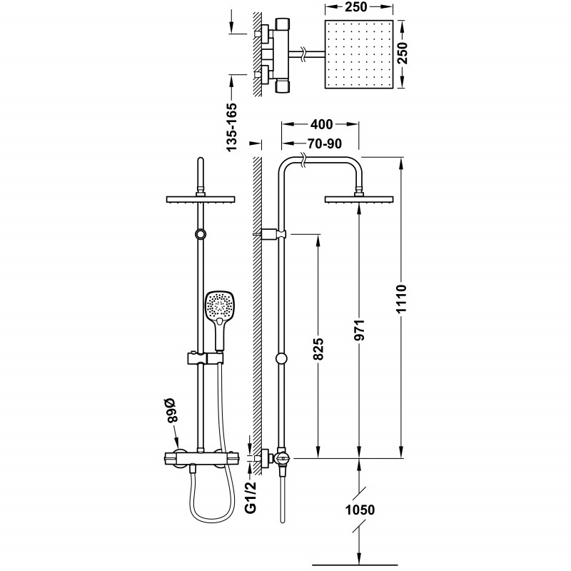 - Несъемный душ 250x250 мм с шарниром
