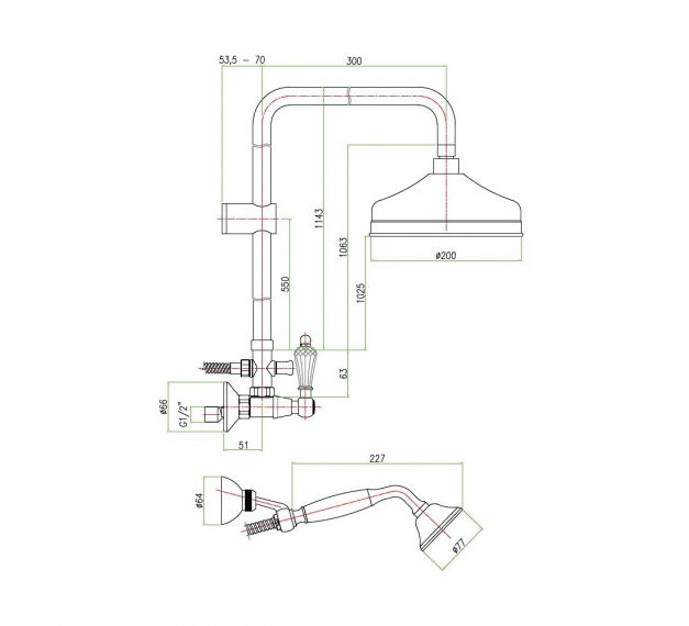 2) Душевая стойка