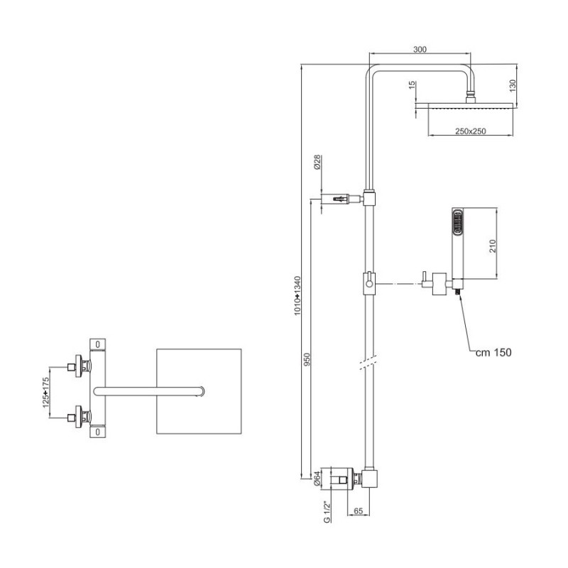 Душевая стойка Fiore Spazio Doccia с термостатом и душевым набором черный матовый 100NN0963