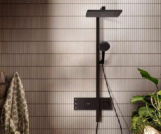 Душевая стойка Hansgrohe Raindance Alive Q 210/340 2jet EcoSmart с термостатом черный матовый 24591670