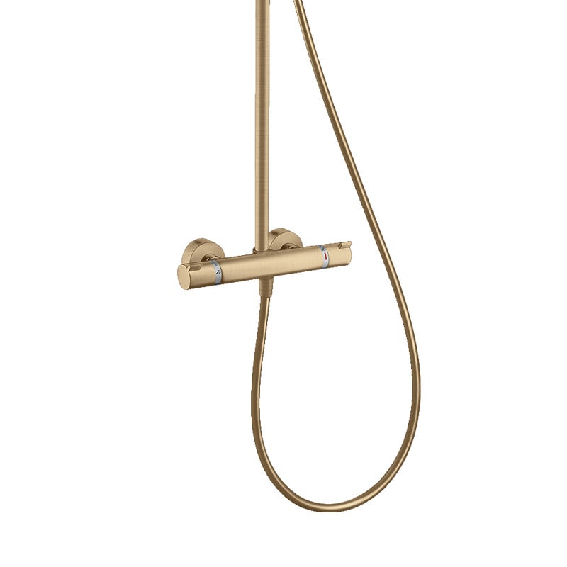 Состоит из: верхний душ, ручной душ, душевой термостат, душевой шланг, держатель, душевая штанга
