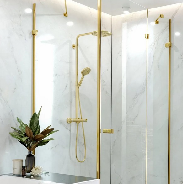 Состоит из: верхний душ, ручной душ, душевой термостат, душевой шланг, держатель, душевая штанга