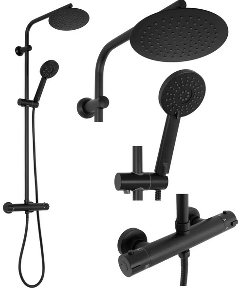 Душевая стойка Rea Bliss с термостатом черный REA-P8804