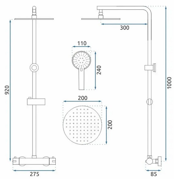 Душевая стойка Rea Bliss с термостатом хром REA-P8805