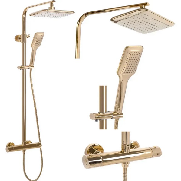 Душевая стойка Rea Tom с термостатом золото