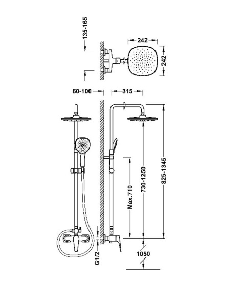 120x120 мм с защитой от известкового налета (3 типа струи)