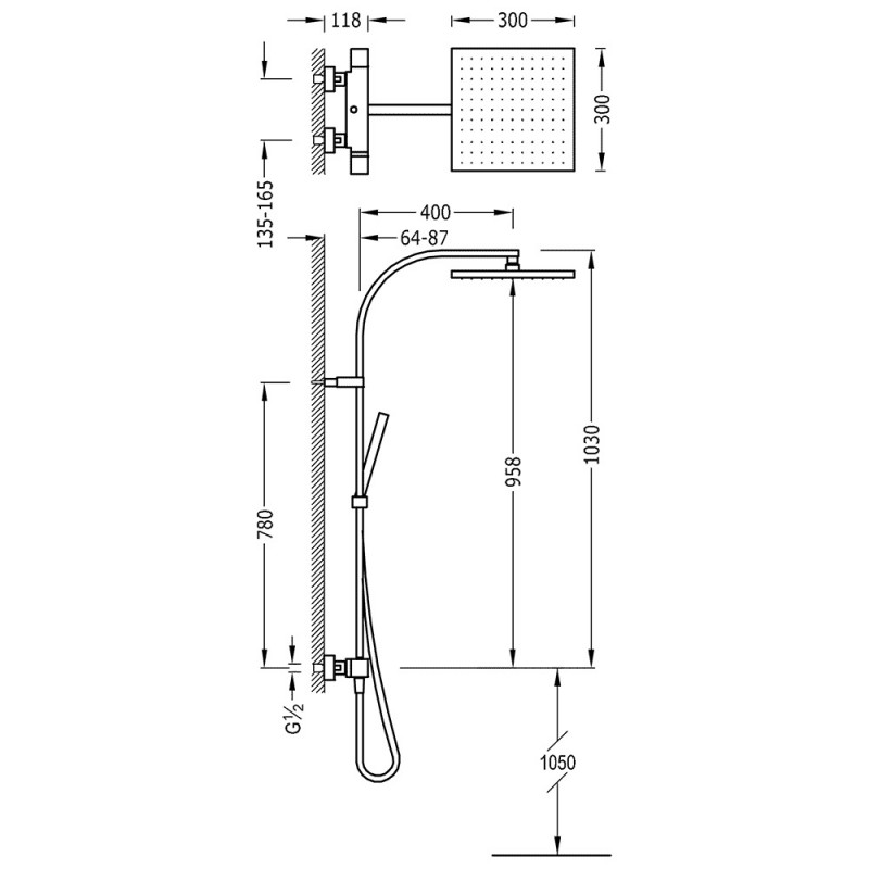 Верхний душ из латуни 300х300 мм