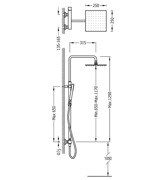 Душевая стойка Tres Cuadro Tres со смесителем верхним и ручным душем хром 00719701