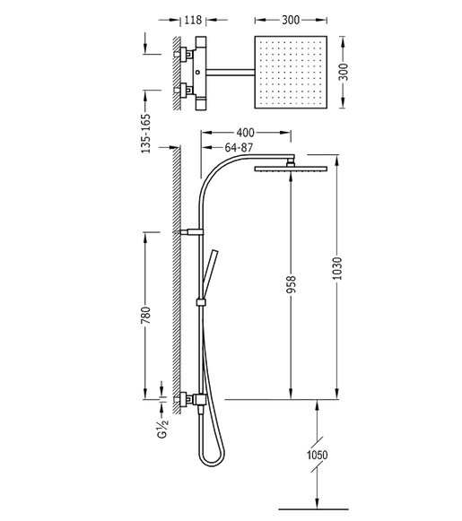 Душевая стойка Tres Cuadro-Tres термостатическая c верхним и ручным душем хром 107395