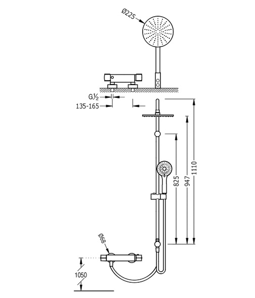 - Ручной душ Ø 100 мм с гидромассажем (5 режимов)