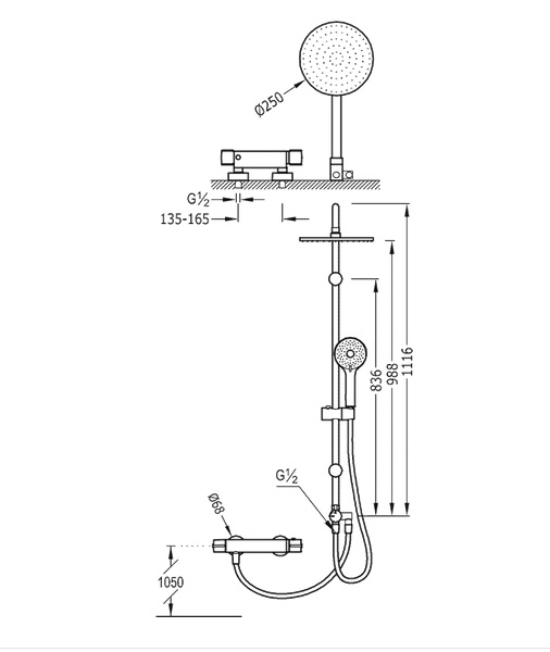 Душевая стойка Tres Eco-Term термостатическая c верхним и ручным душем хром