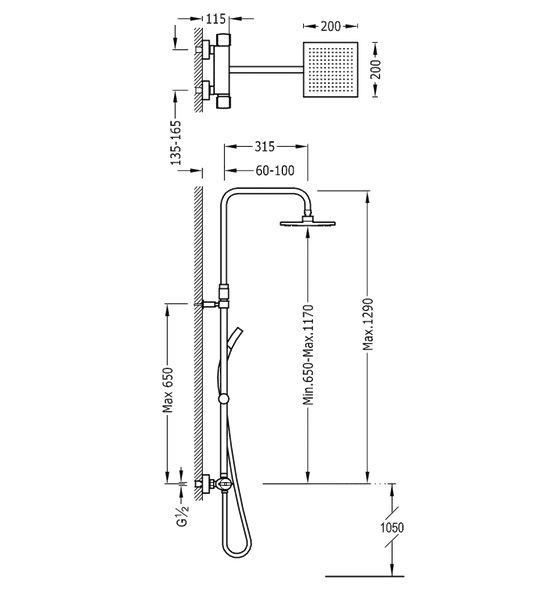 - Съемный душ 80x80 мм с антиизвестковым покрытием