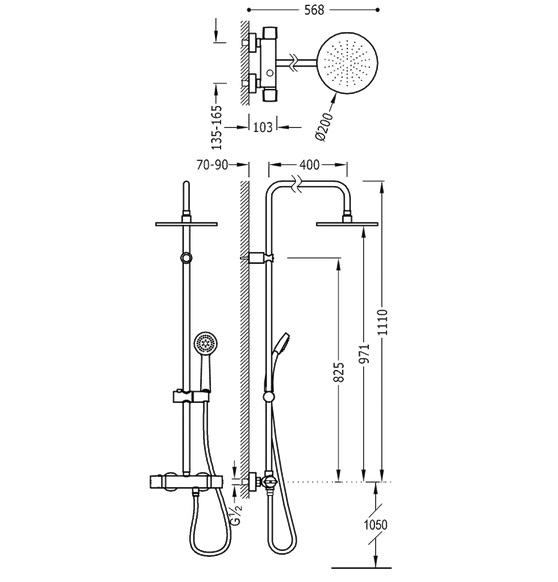 Душевая стойка Tres Lex термостатическая c верхним и ручным душем хром 181386