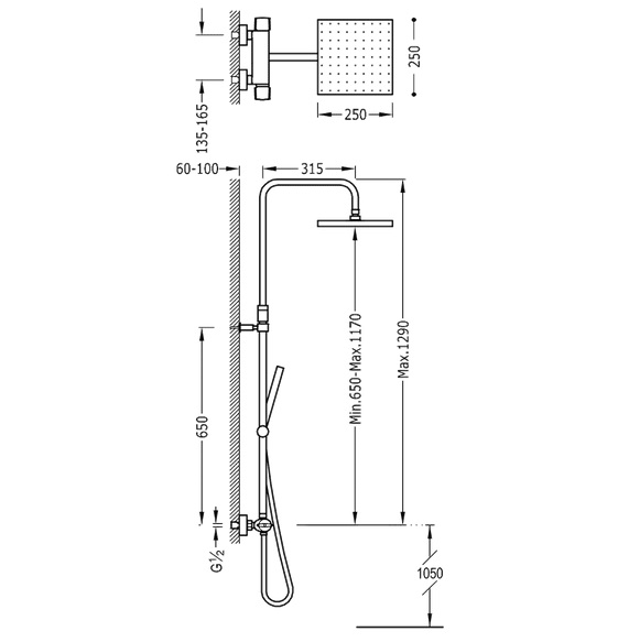 Душевая стойка Tres Lex-Tres термостатическая c верхним и ручным душем хром 190213