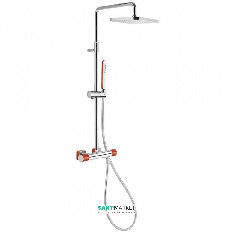 Душевая стойка Tres Loft colors с термостатом красный/хром